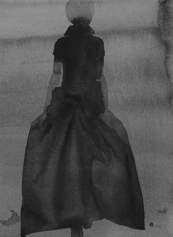 Yohji Yamamoto Vogue Italia, Watercolor, 13 × 9½", 1996